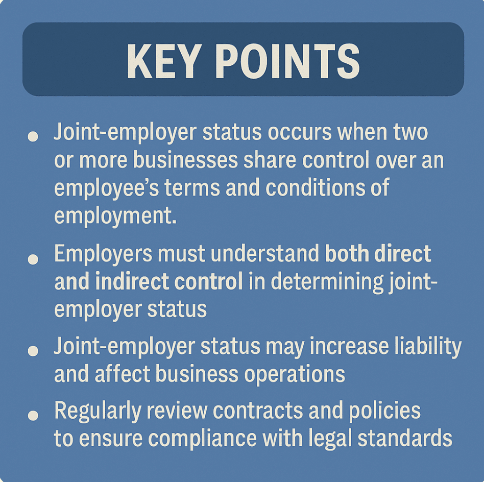 Whether you operate a small local franchise or manage staffing for a growing construction firm, understanding joint-employer regulations is no longer optional—it’s a necessity.